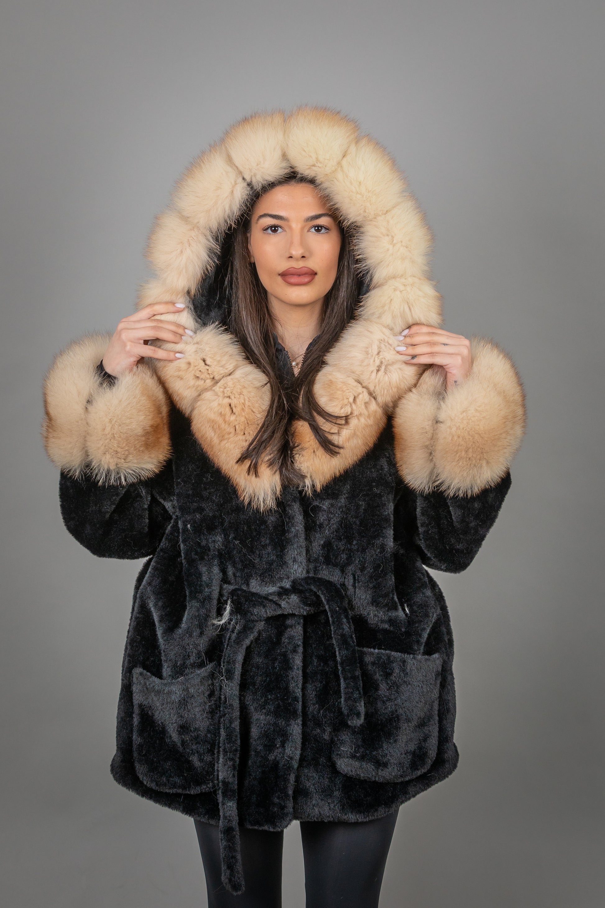Fox Fur Trim: Typically used on the collar, cuffs, and sometimes along the hem or front panels. Fox fur is prized for its thick, fluffy texture and warmth.