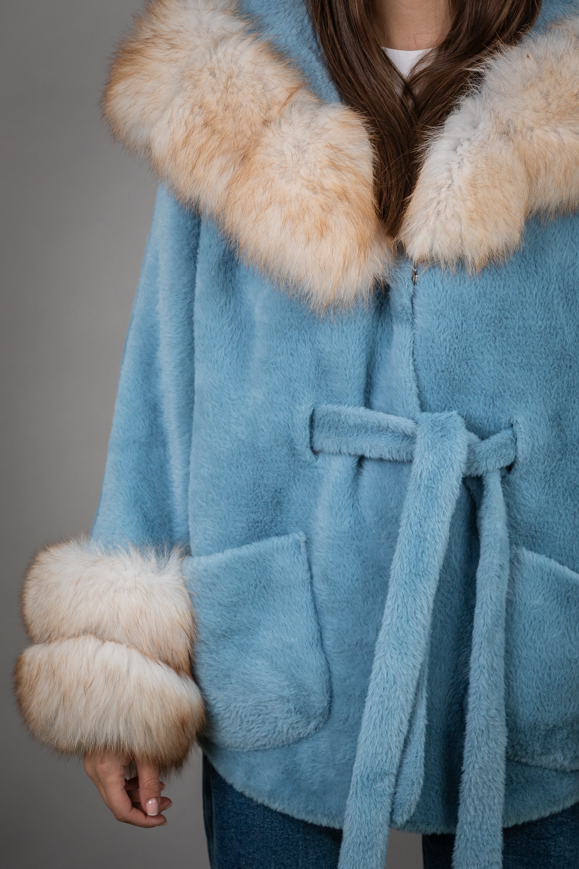 An Alcantara and Fox Fur Coat is a luxurious outerwear piece that combines the elegance of Alcantara fabric with the opulence of fox fur. Here’s a detailed description:
