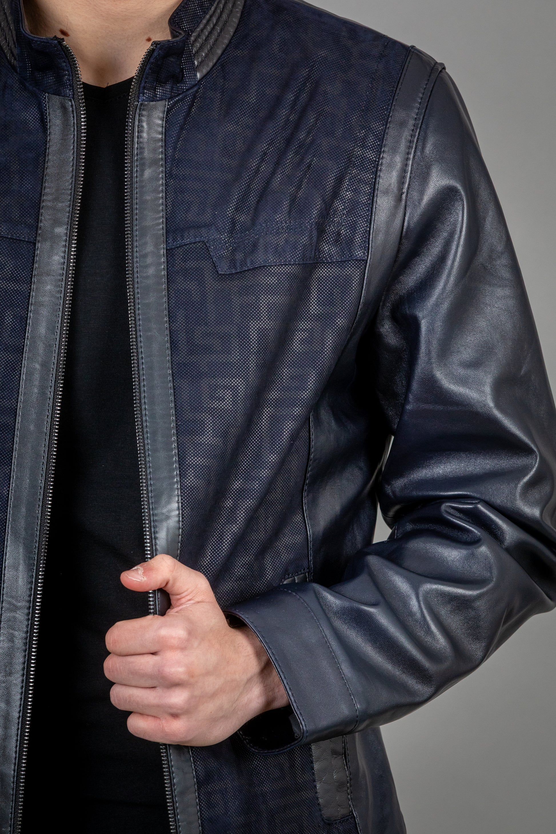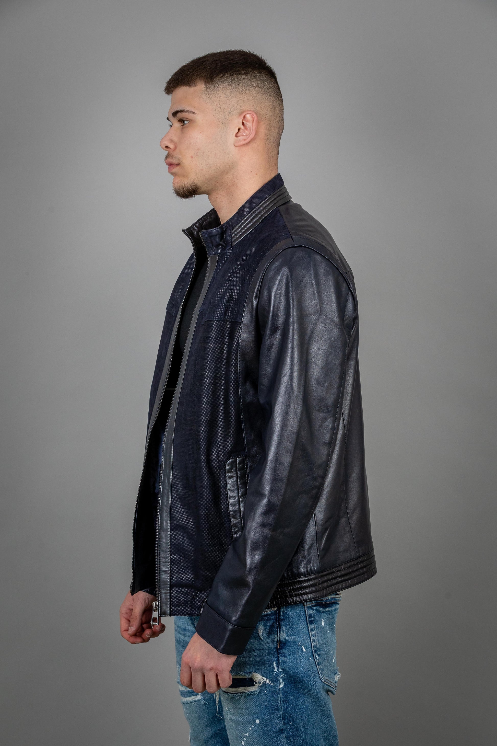 A Calf and Pressed Leather Jacket is a premium outerwear piece that blends smooth calf leather with textured pressed leather for a unique and sophisticated look.