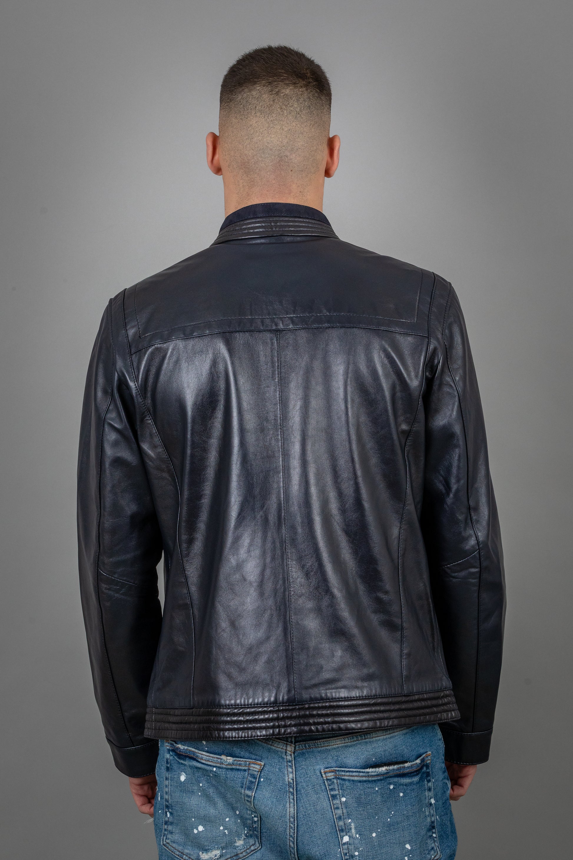 Design: A mix of smooth and textured leather panels creates a distinctive contrast, enhancing the jacket’s depth and style.
