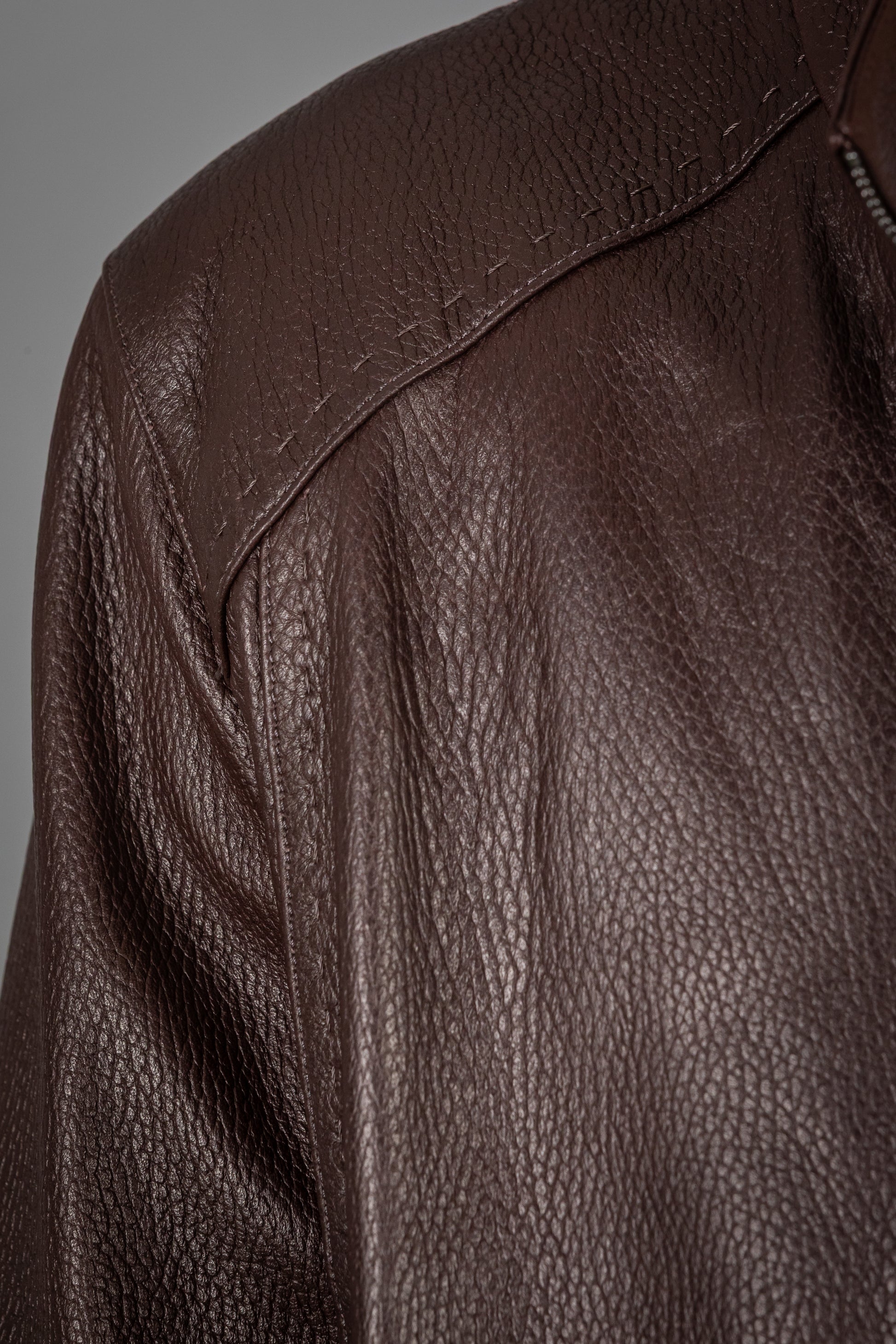 Ideal for those who seek a refined edge, this calf leather jacket is a staple in any elevated wardrobe—suited for city streets, weekend escapes, or understated evening wear.