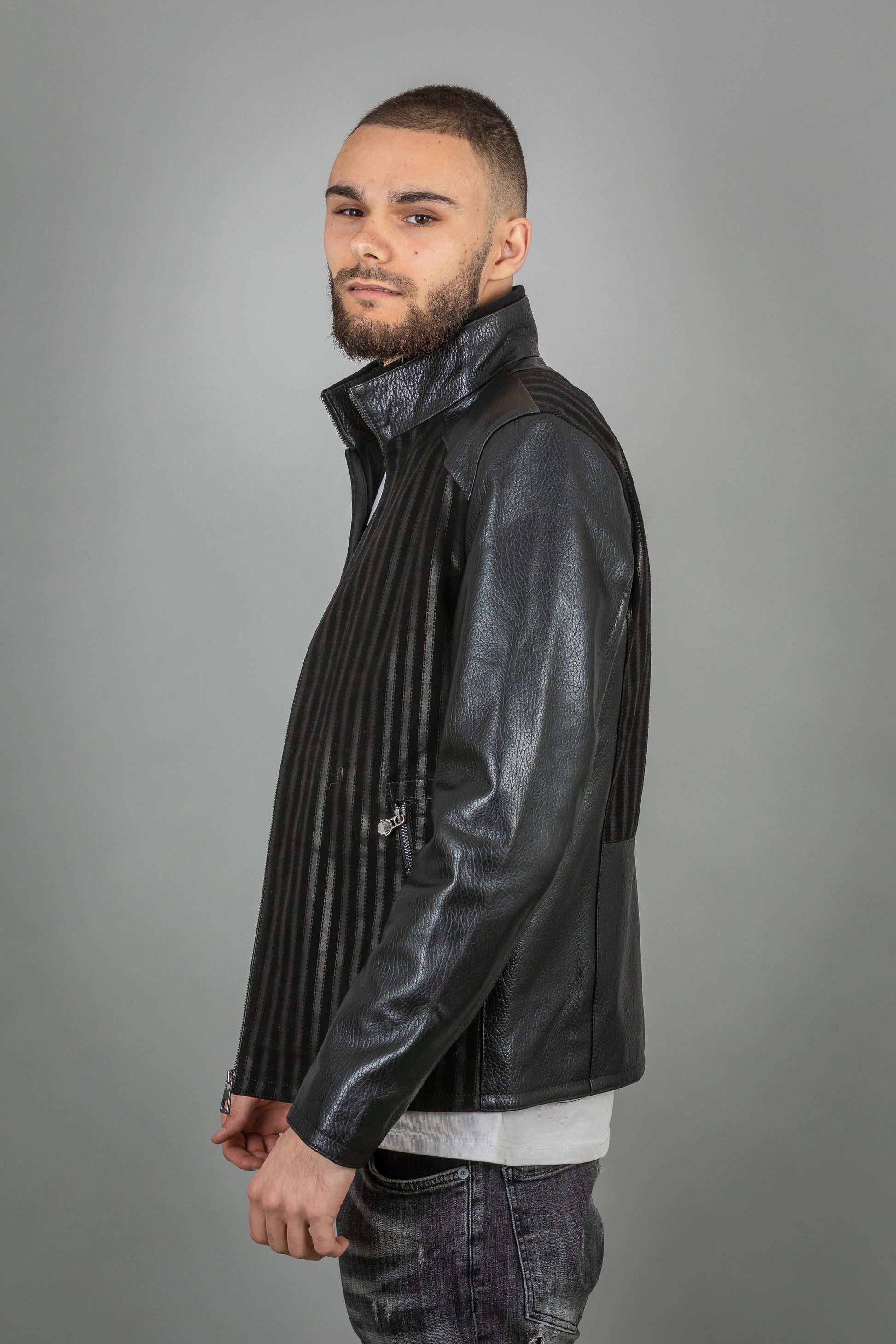 Experience the perfect blend of **luxurious textures and refined craftsmanship** with this **calf leather jacket featuring suede elements**. Designed for those who appreciate **elevated style with a unique edge**, this jacket combines the **smooth, durable feel of premium calf leather** with the **soft, velvety touch of suede**, creating a **rich contrast that exudes sophistication**.