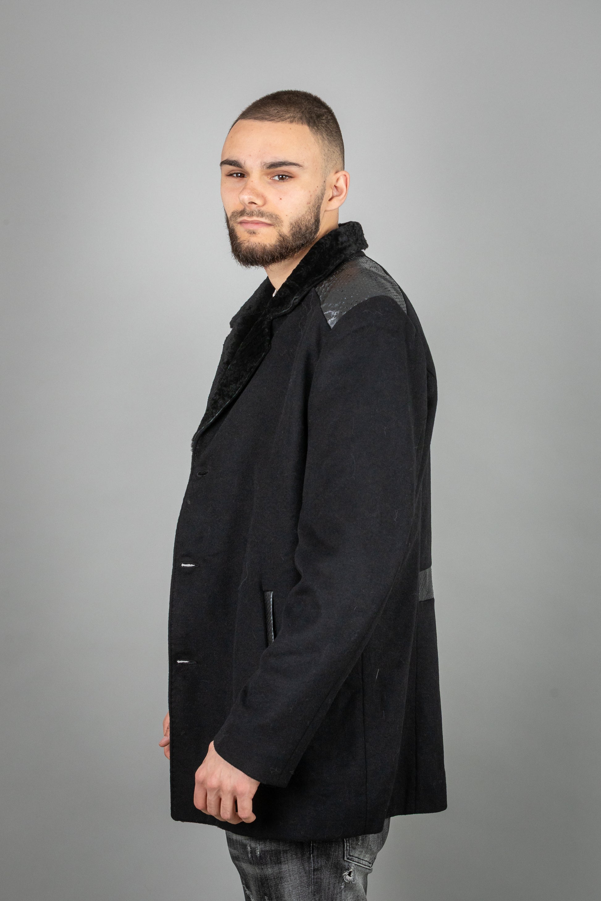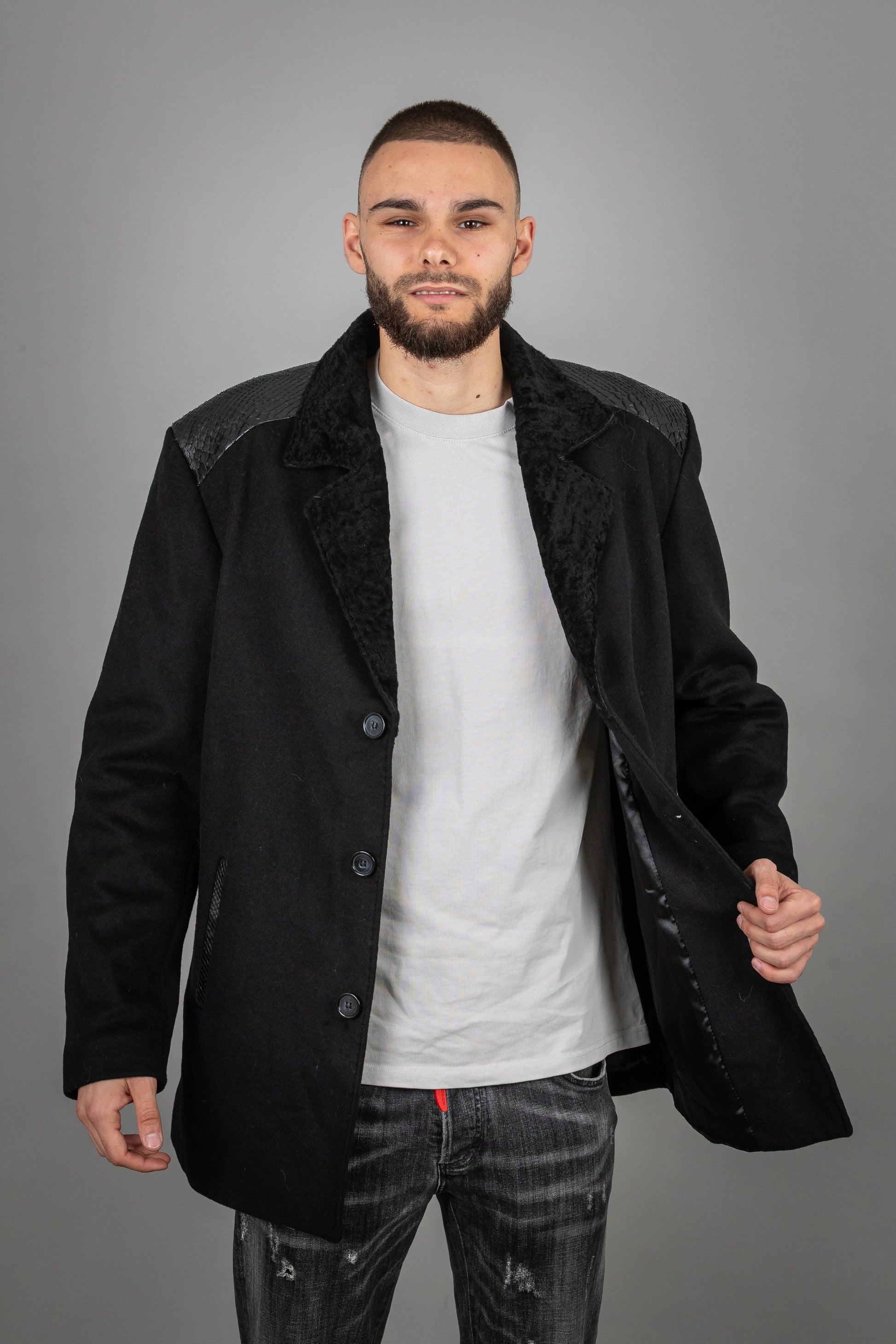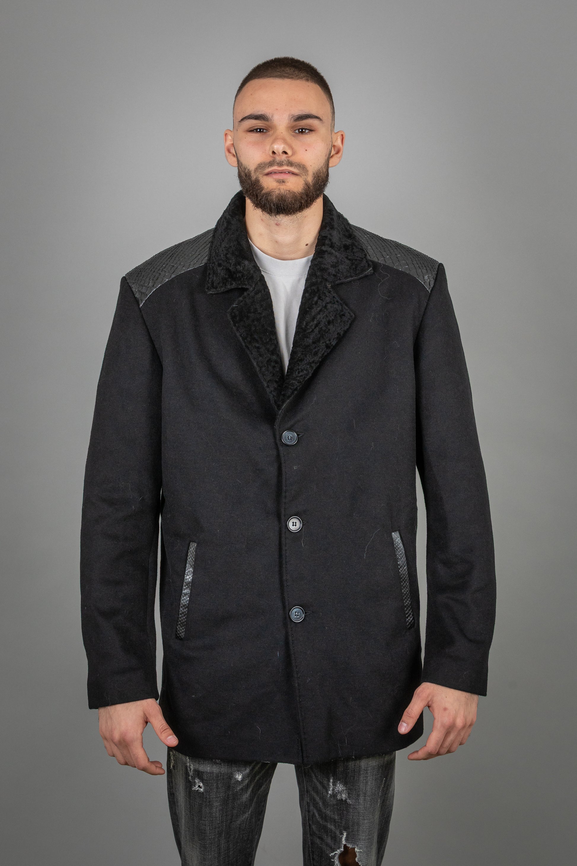 Experience the perfect blend of luxurious textures and sophisticated craftsmanship with this exclusive cashmere and Astrakhan leather jacket. Designed for those who appreciate refined fashion, this piece combines ultra-soft cashmere, sumptuous Astrakhan fur, and premium leather for a look that is both bold and elegant.