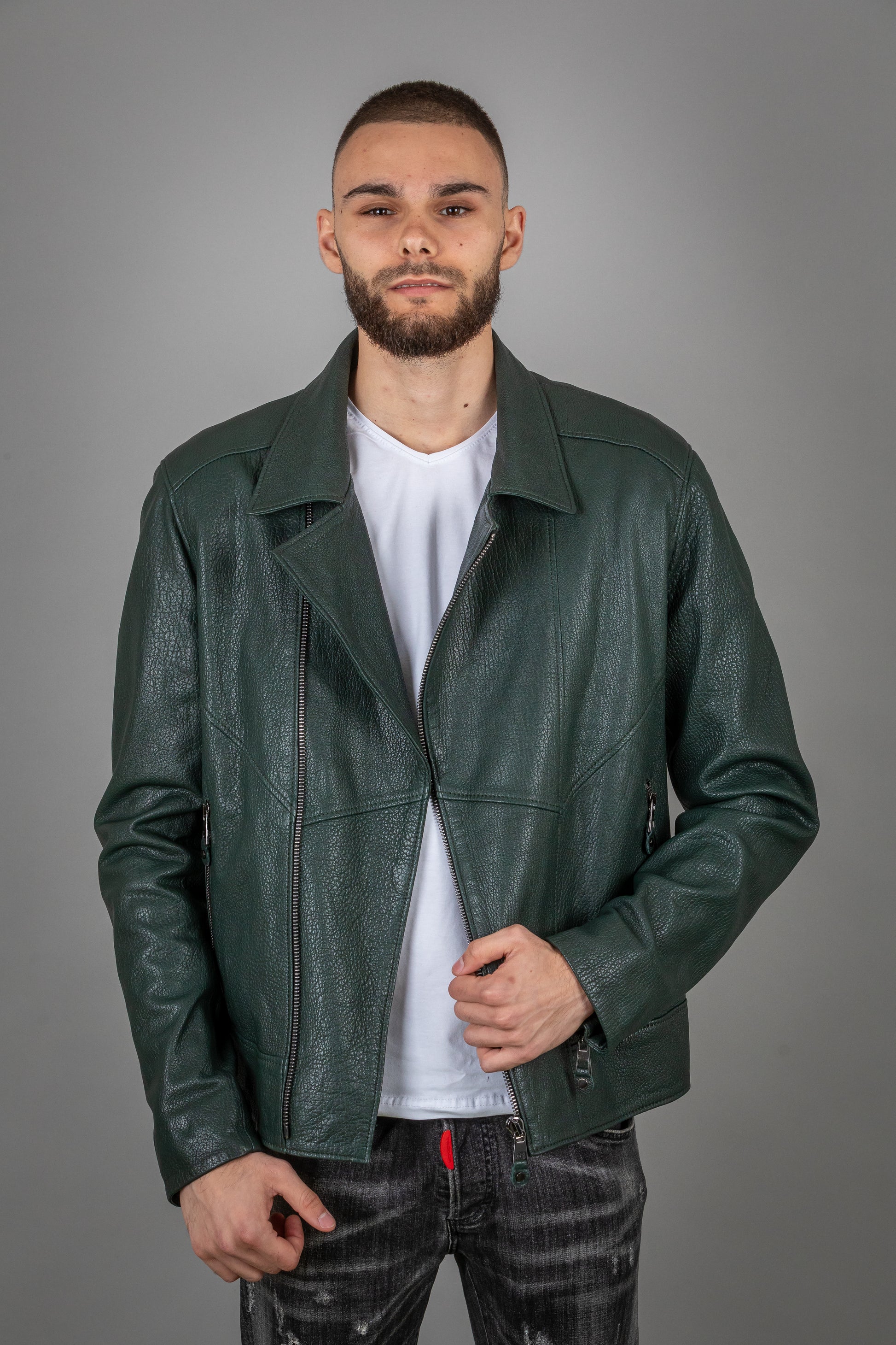 Green Calf Leather Jacket – Bold Sophistication with a Modern Edge