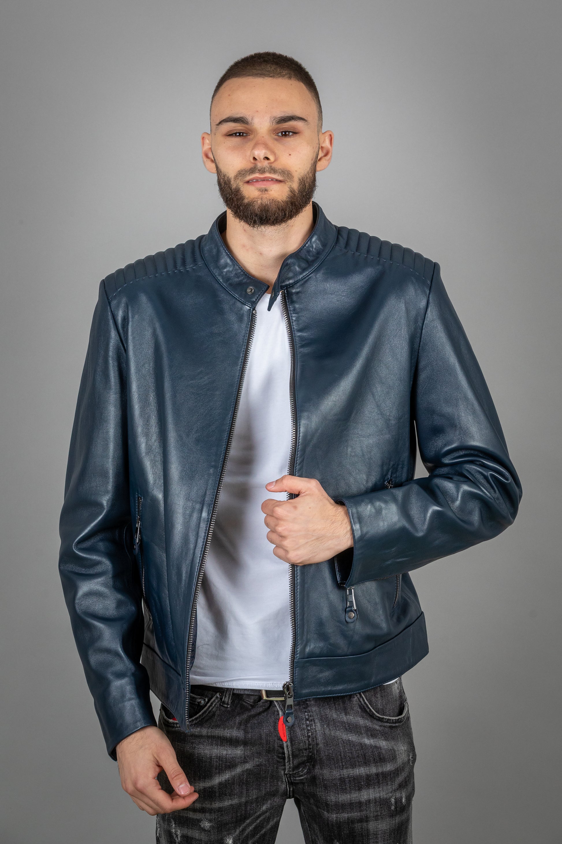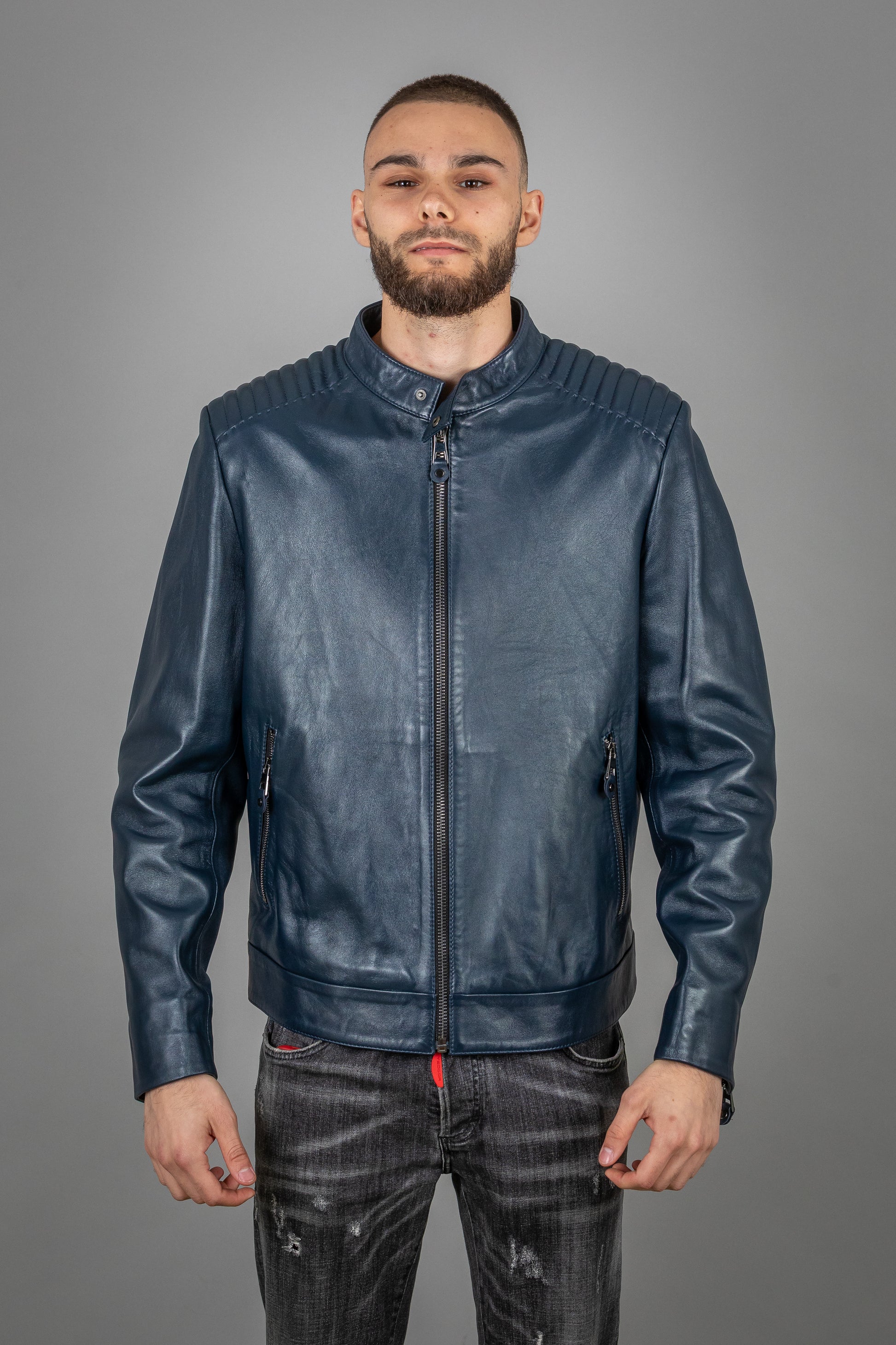 Crafted from the finest lamb leather, this jacket is the perfect combination of rugged luxury and sophisticated style. The ultra-soft, supple leather molds to the body, offering both comfort and durability that improve with age. Designed with a sleek, modern silhouette, it provides a refined yet bold look, making it an essential piece for any discerning wardrobe.