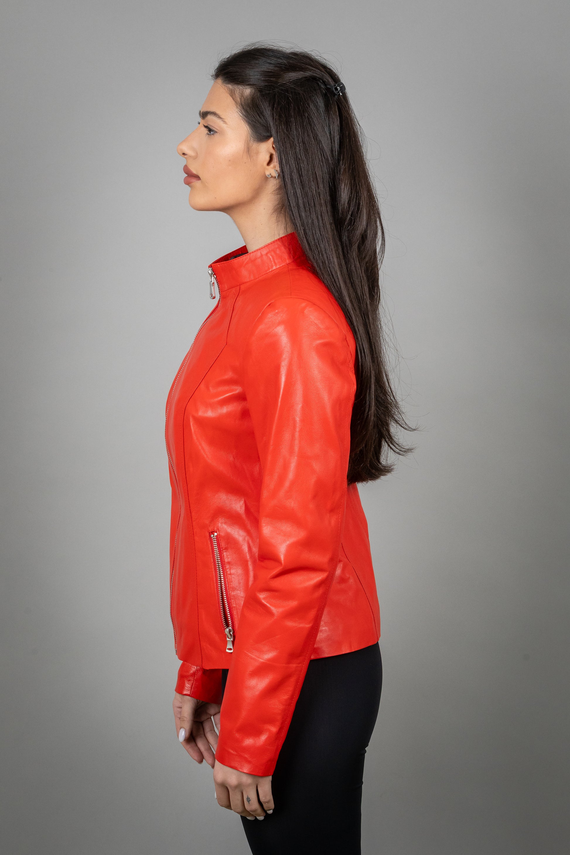 Whether paired with denim for a classic casual look or layered over a dress for effortless chic, this lamb leather jacket is a wardrobe essential for every fashion-forward individual.