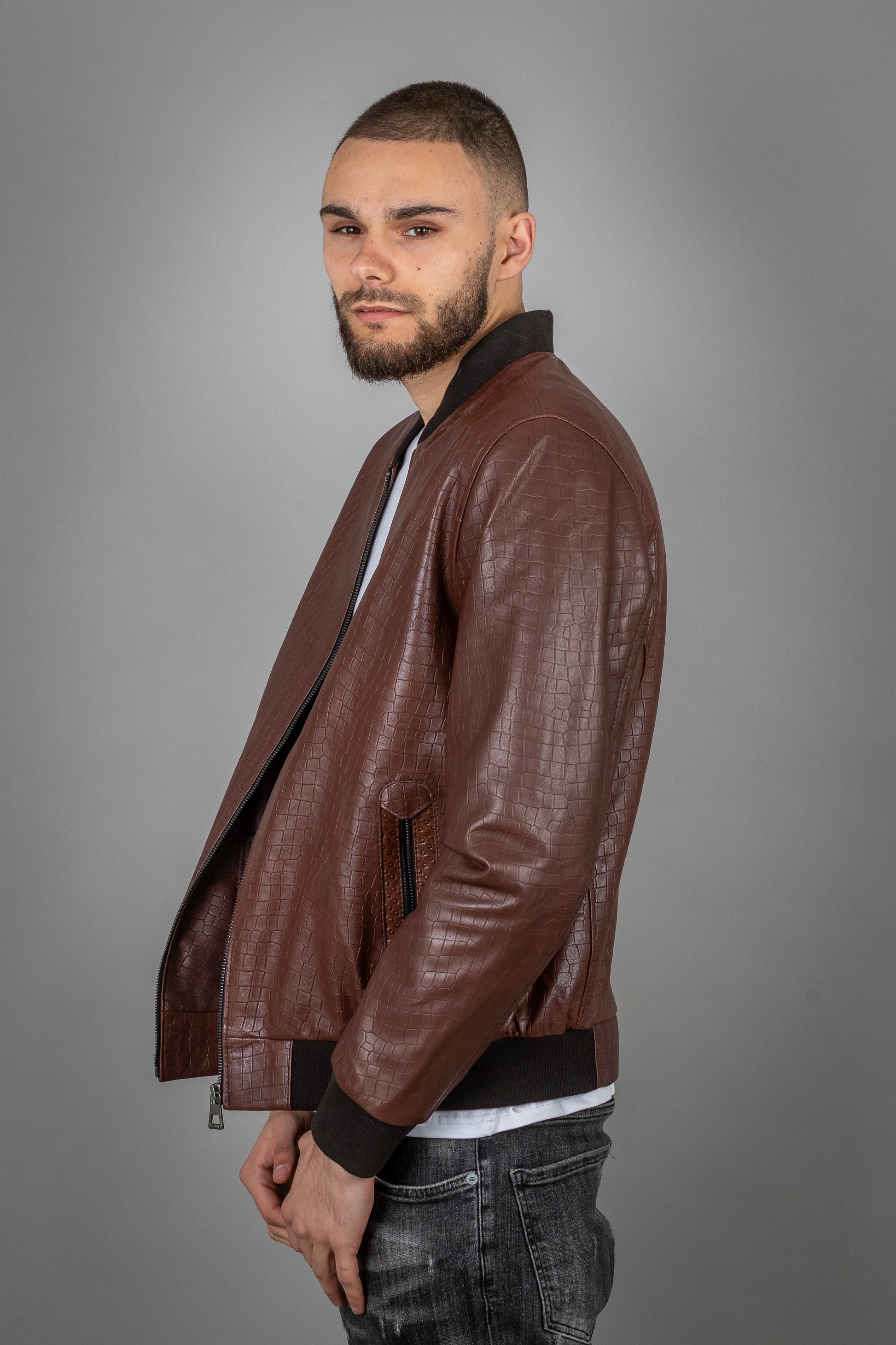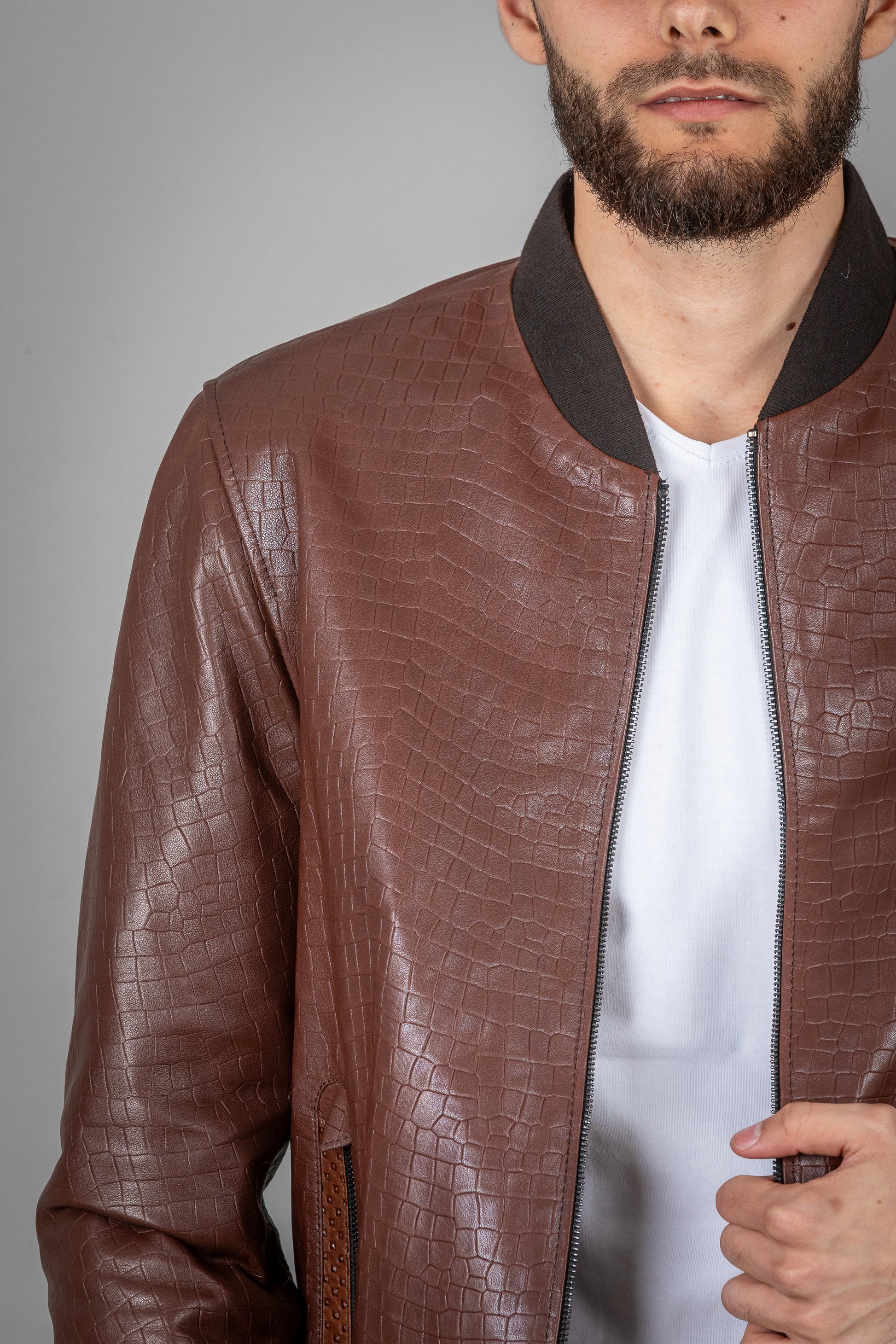 Stamped Calf Leather Jacket – Textured Precision, Elevated Edge
